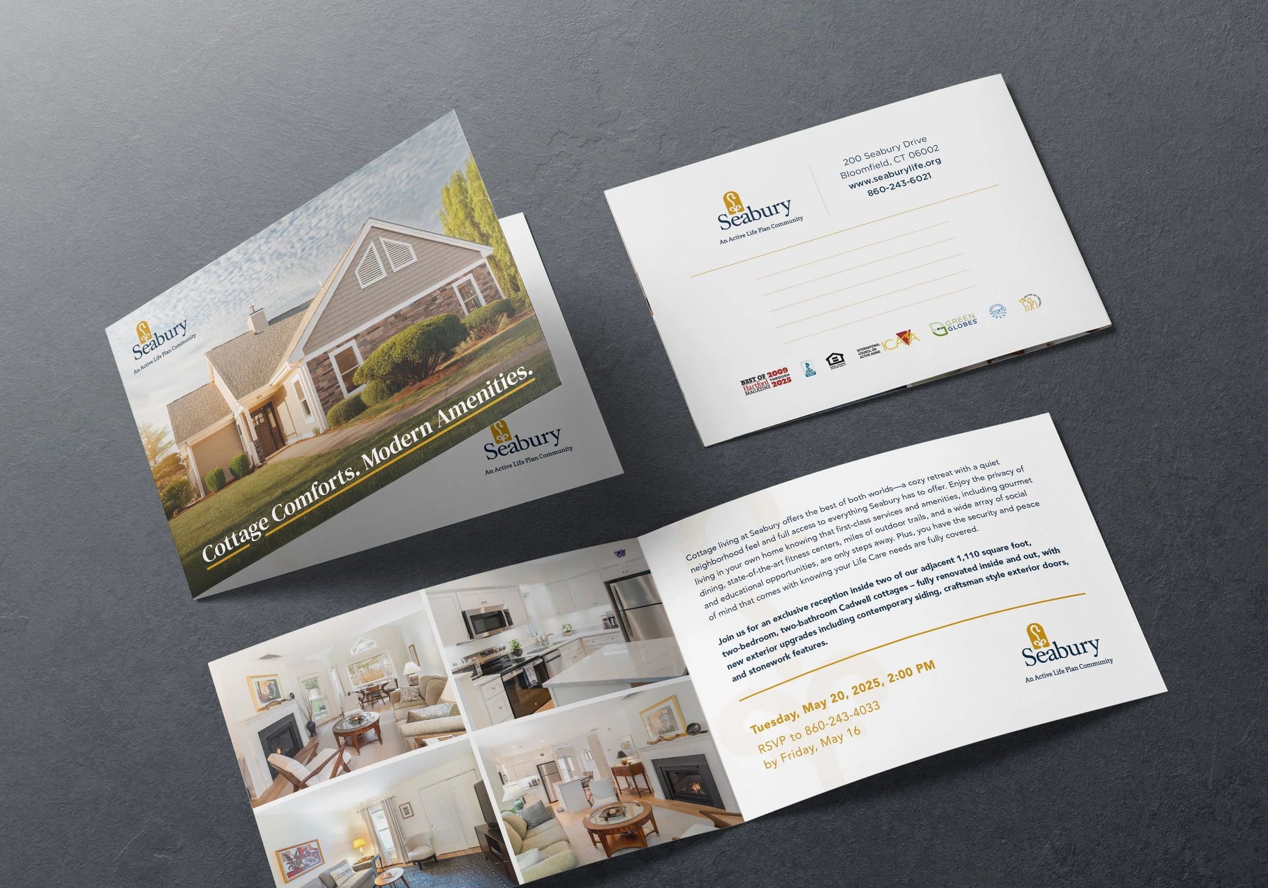 I have been asked to design multiple holiday cards, mailers for summer, winter and spring, print ads and even the occasional web ad for a few campaigns. One of the biggest projects was being able to update their brand guide to reflect the latest design style we have been using for Seabury, updating colors, fonts, rules & regulations for print and web.